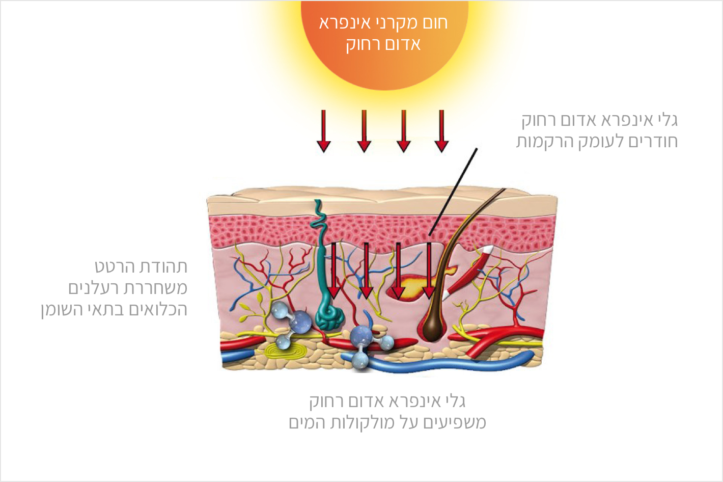 העלאת חום הגוף באופן עמוק ומבוקר, עם קרני אינפרא אדום רחוק, מהווה תהליך המסייע לשפר את תפקודי כל מערכות הגוף.